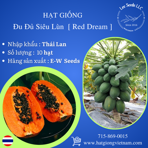Lee's Garden - Hạt giống rau củ Việt Nam.Hạt Giống Đu Đủ Siêu Lùn F1 [ Red Dream - E-W Seeds - Thái Lan ]
